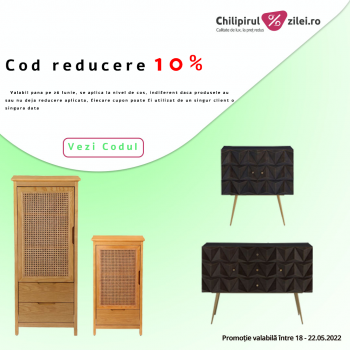 Cod reducere 10% Chilipirul Zilei Valabil pana pe 26 Iunie, se aplica la nivel de cos, indiferent daca produsele au sau nu deja reducere aplicata, fiecare cupon poate fi utilizat de un singur client o singura data
